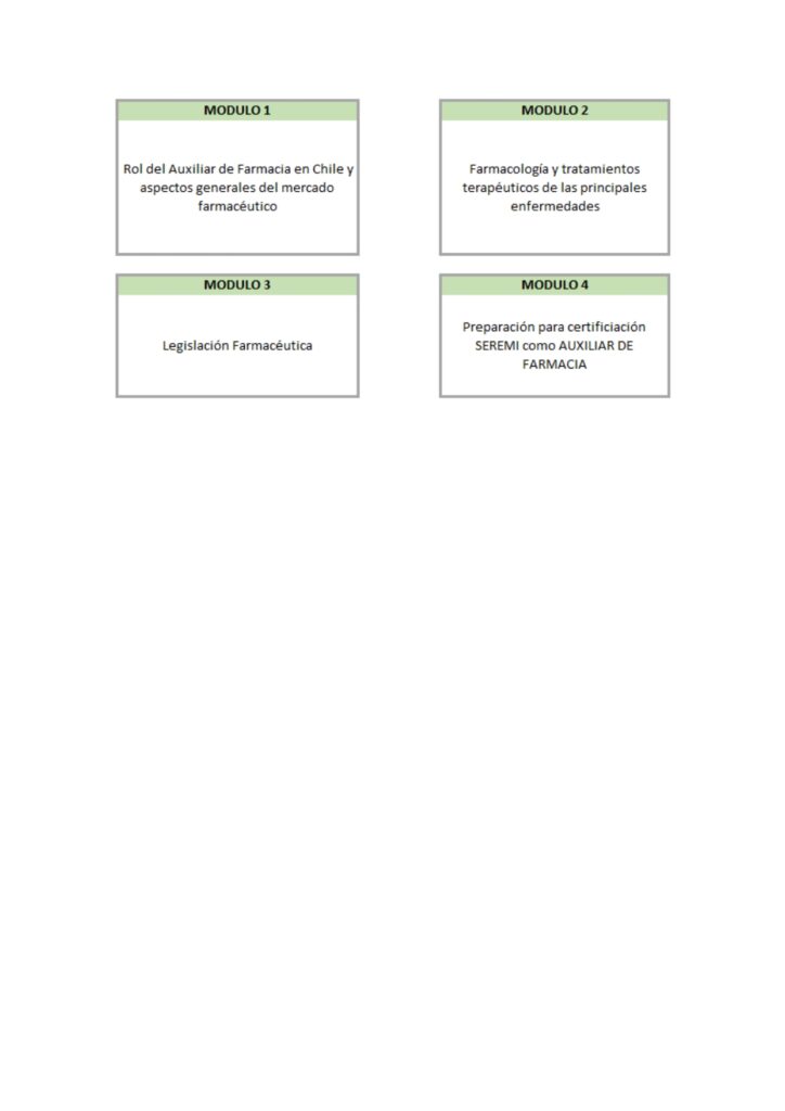 Una vez finalizado el curso, los estudiantes tendrán la información necesaria para rendir el examen de Auxiliar de Farmacia para optar, según sus resultados, a la certificación SEREMI que los habilitaría para desempeñarse en el cargo de Auxiliar de Farmacia.